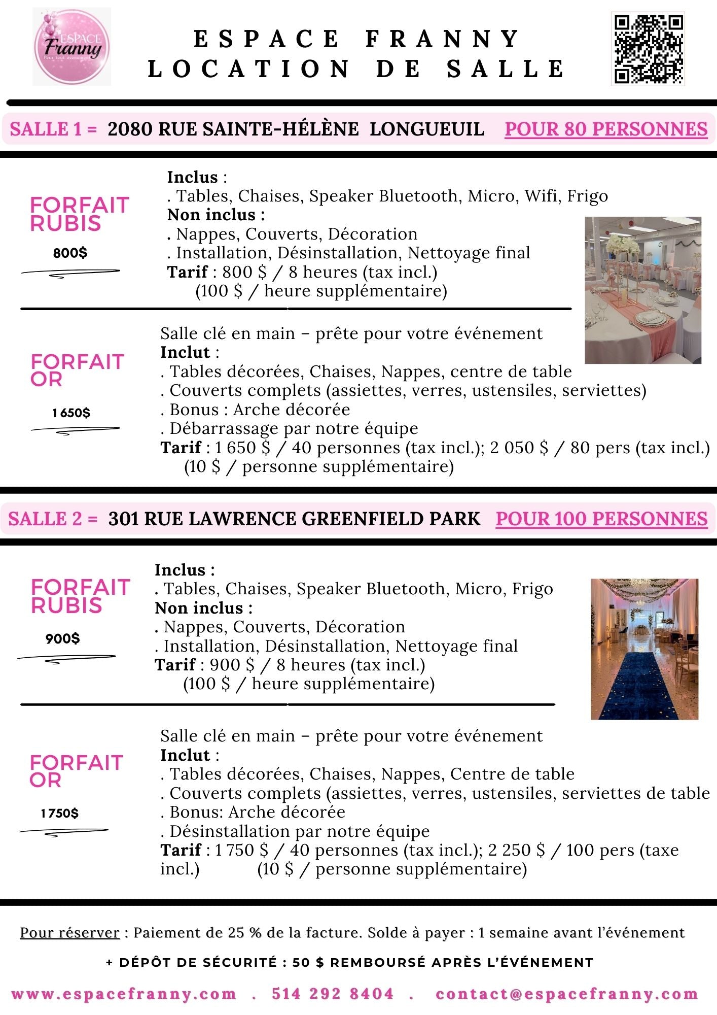- SALLE 1 = Pour 80 personnes, au 2080 rue Sainte Helene, Longueuil